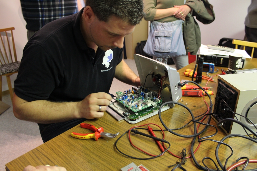 Es war ordentlich was los als am 5. Mai 2018 um 11 Uhr die Pforten zu unserem ersten Repair-Cafe in Niederaula geöffnet wurden. Bereits zu Beginn der Veranstaltungen standen ca. 10 Personen mit defekten Geräten vor der Tür, um gemeinsam mit uns Funkamateuren eine Reparatur zu wagen. Da kam der OVV an der Anmeldung schon ein wenig ins Schwitzen.