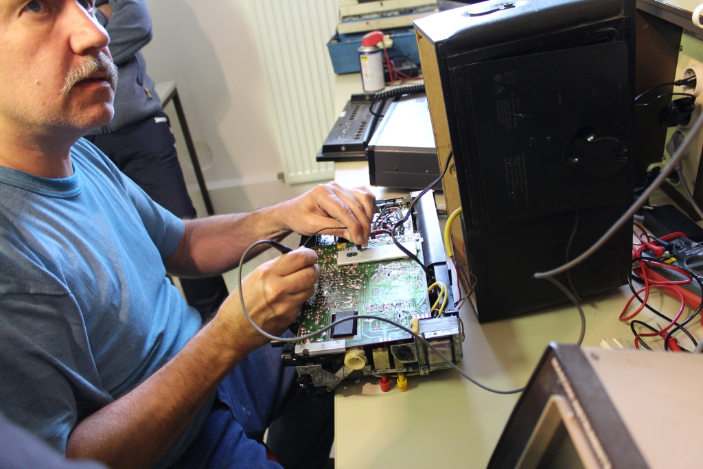Im wesentlichen kamen die Besucher mit defekten Elektrogeräten, die sich oft mit wenigen Handgriffen wieder flott machen ließen. Da war zum Beispiel ein Mixer bei dem das Kabel vom Einschaltknopf aufgrund jahrelanger mechanischer Beanspruchung abgerissen ist. Die Reparatur war kein Problem: Mixer aufschrauben, Kabel neu anlöten, fertig! Der Mixer läuft wieder und die Besitzer sind überglücklich.