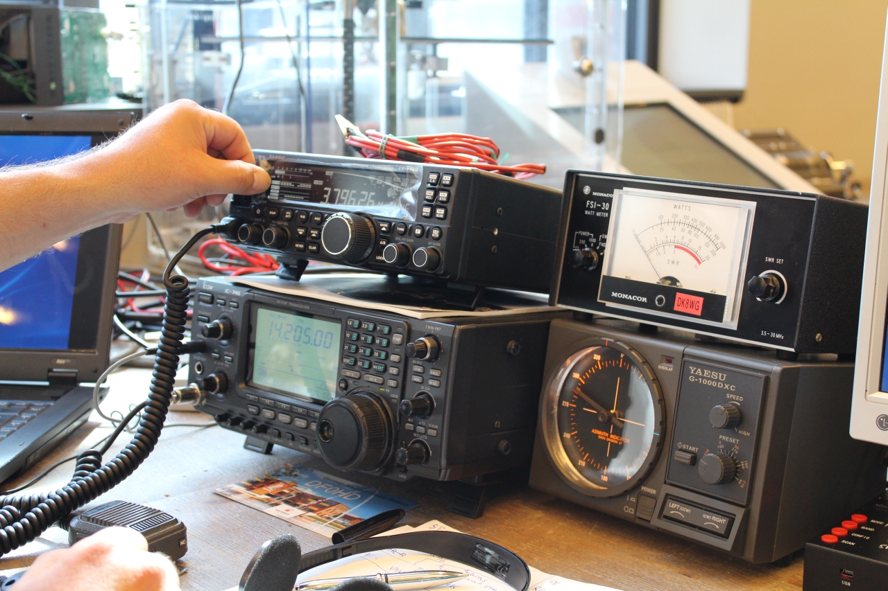 Im 2. Obergeschoss des Wortreich ist eine weitere Funkstation aufgebaut. Hier sind Ronny DO3RON, Markus DO3MA und Joachim DB8FK eingebunden. Es werden verschieden Exponate rund um den Amateurfunk ausgestellt. Eine UKW-Station ist ebenfalls in Betrieb. Von hier startet außerdem die Funkralley quer durch die Ausstellung: Ausgestattet mit PMR-Geräten werden die Teilnehmer per Funk durch das Wortreich gelotst. Sie müssen kleine Aufgaben erfüllen und sich per Funk bei der Zentrale zurück melden. Wer am Ende alle Aufgaben erfolgreich absolviert hat, bekommt das Sprechfunkdiplom verliehen.